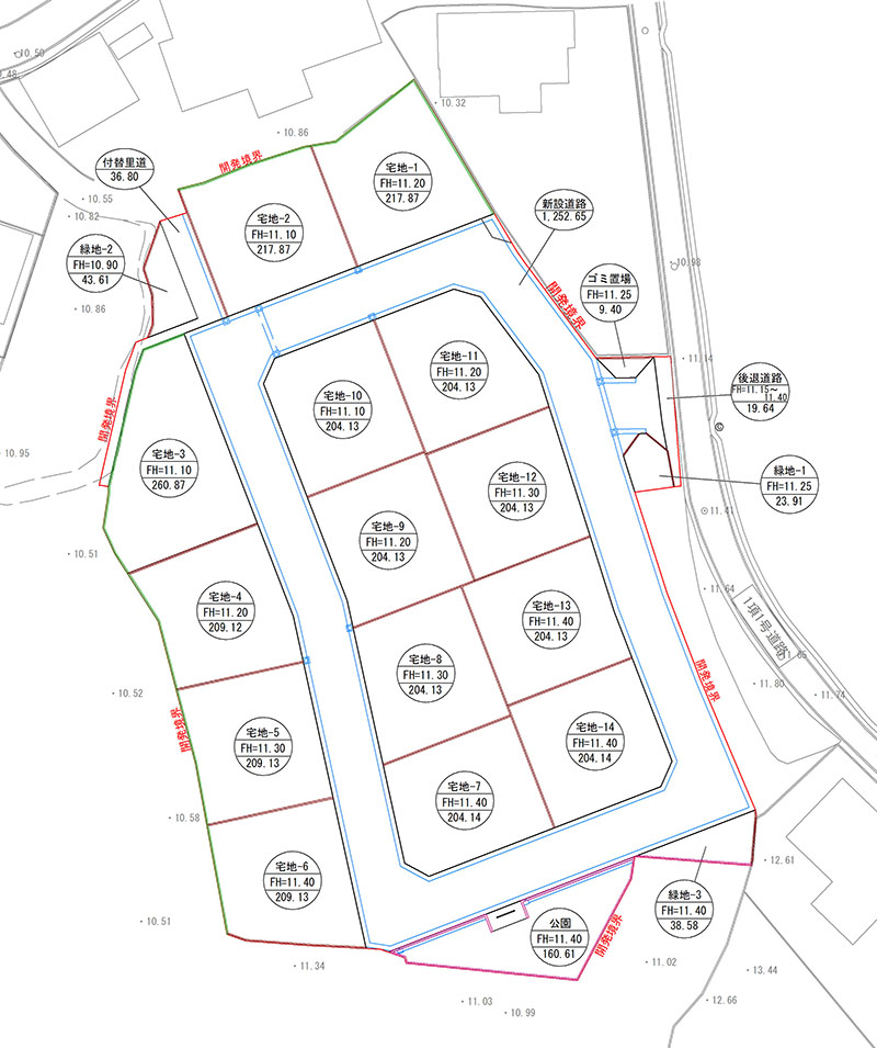 各宅地毎の(建築設計時に必要な)図面を、ご提供いたします。